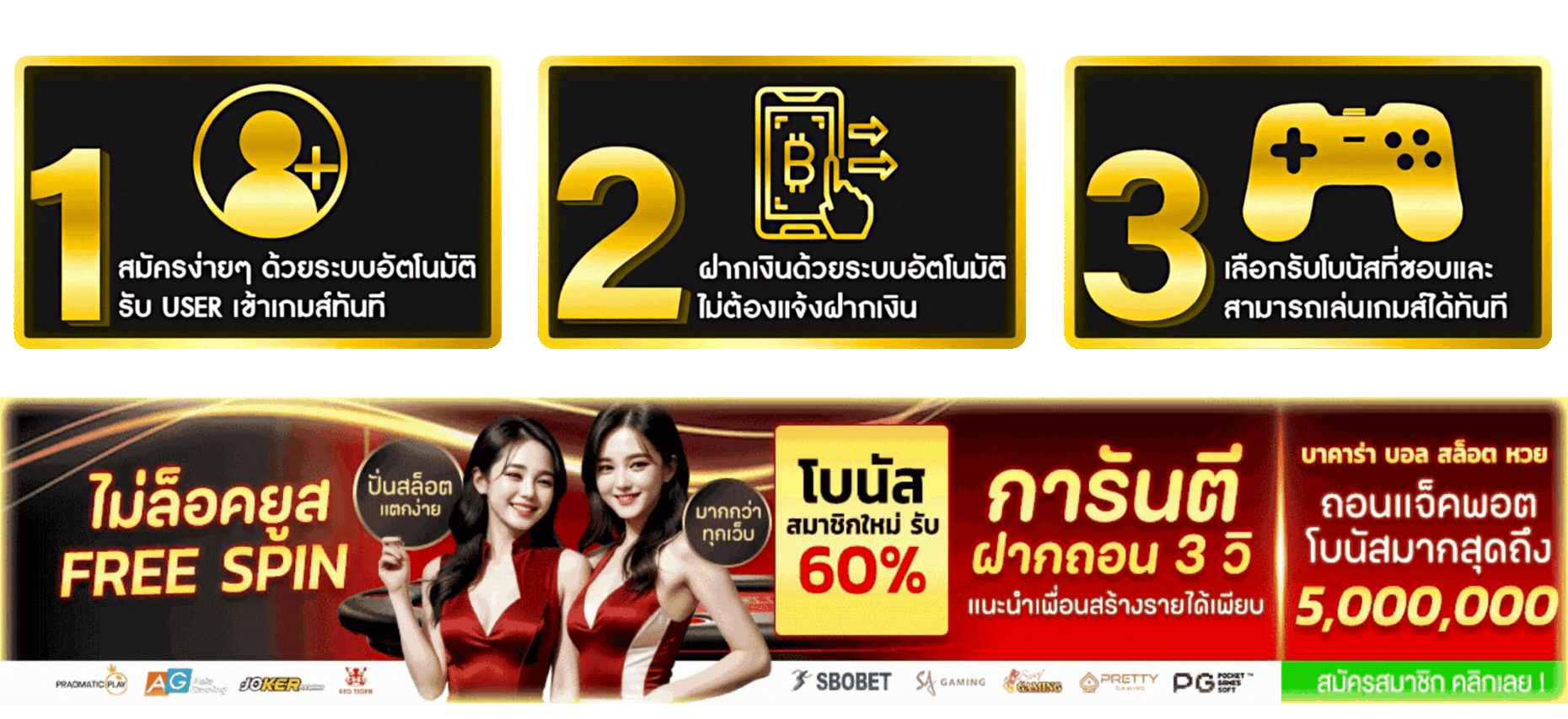 ตอบ : ฝาก-ถอนรวดเร็วภายใน 30 วินาที มีระบบอัตโนมัติ รองรับทุกธนาคาร มีโปรโมชั่นและเครดิตฟรีมากมาย ระบบเสถียร ปลอดภัย มีทีมงานดูแล 24 ชม.